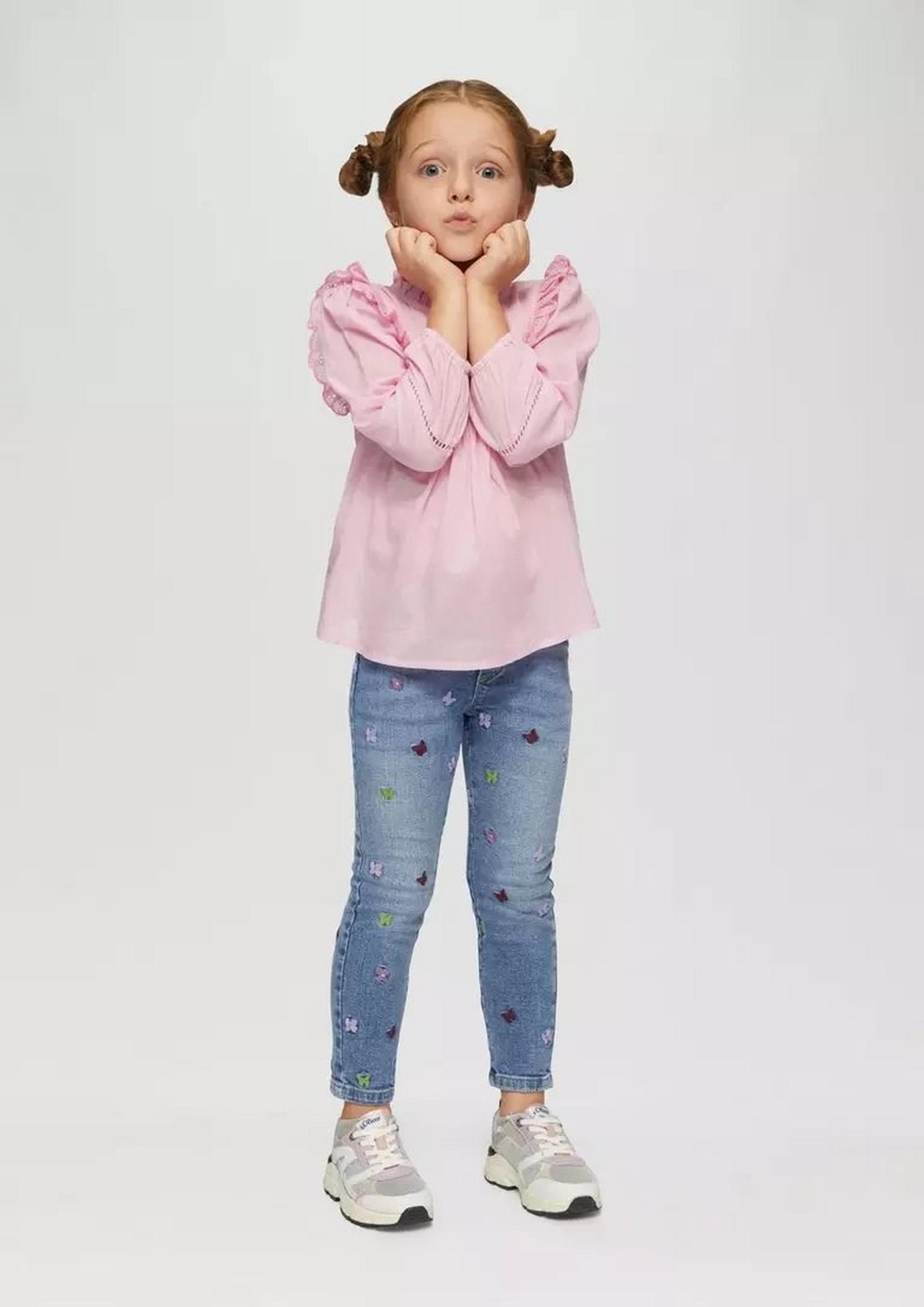 Auch bei den Mädchen zählen bequeme Denim-Pieces zu den Alltagsstars: Slim- und Regular-Fits mit verstellbarem Bund (Artikelnr. 2150031, 2162784) bieten viel Beweglichkeit und bleiben beim Spielen angenehm flexibel.