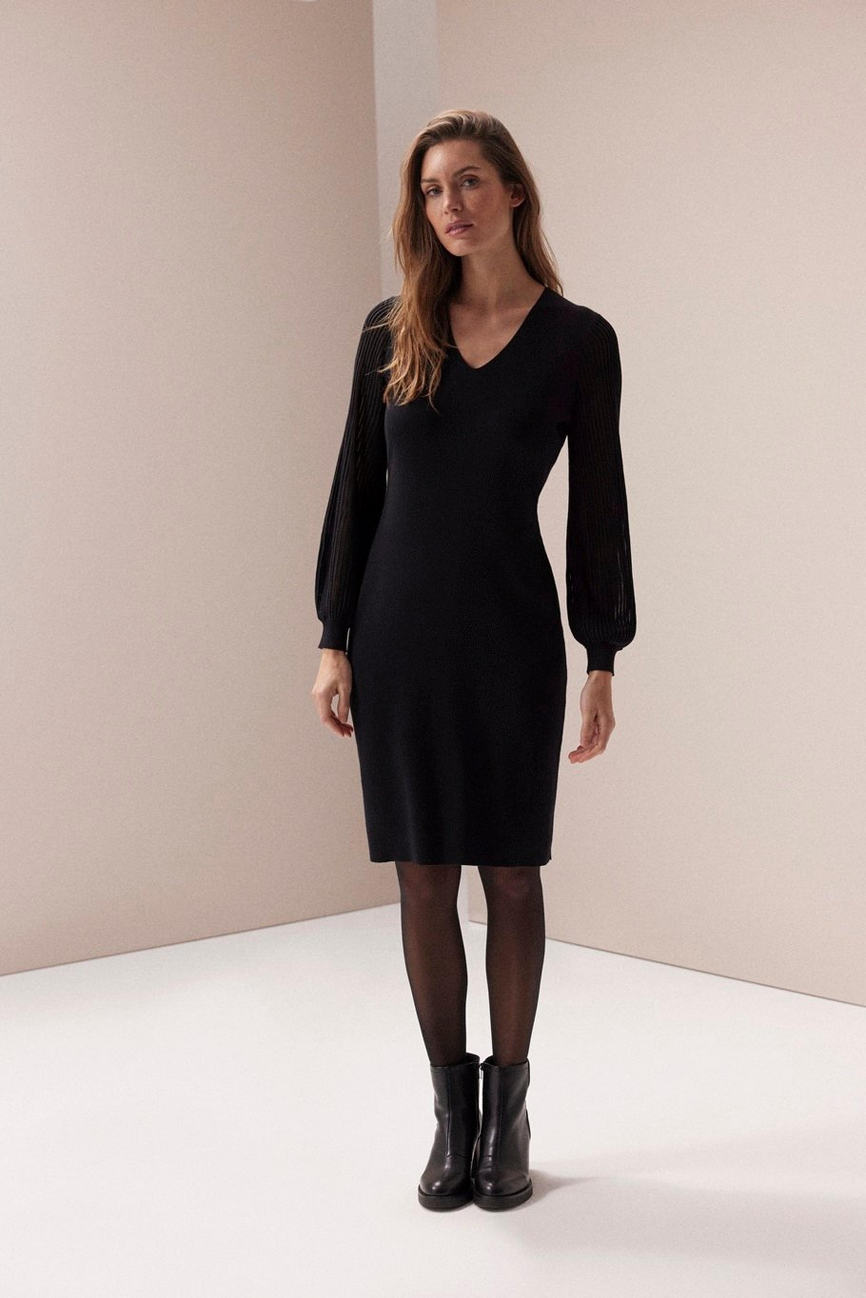 Dazu kommt ein besonderes Highlight: das feminine Strickkleid mit Plissee-Arm (Artikelnr. 2171570). Es bringt eine schöne Silhouette und wirkt sowohl im Alltag als auch zu besonderen Momenten.