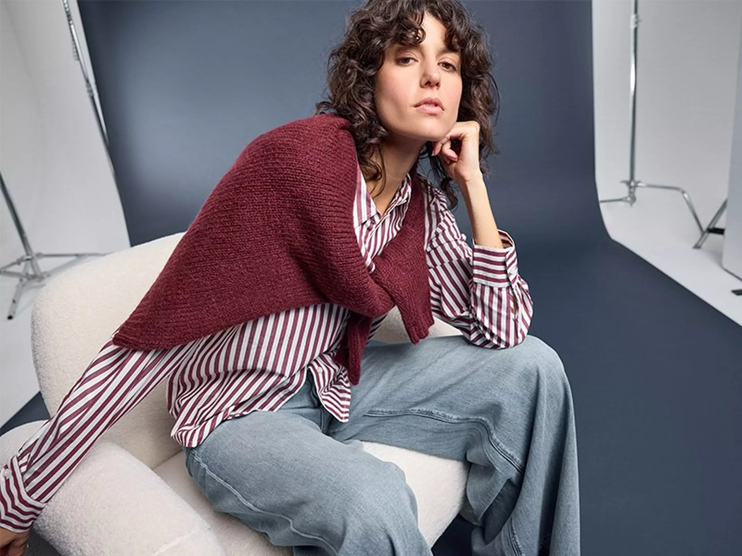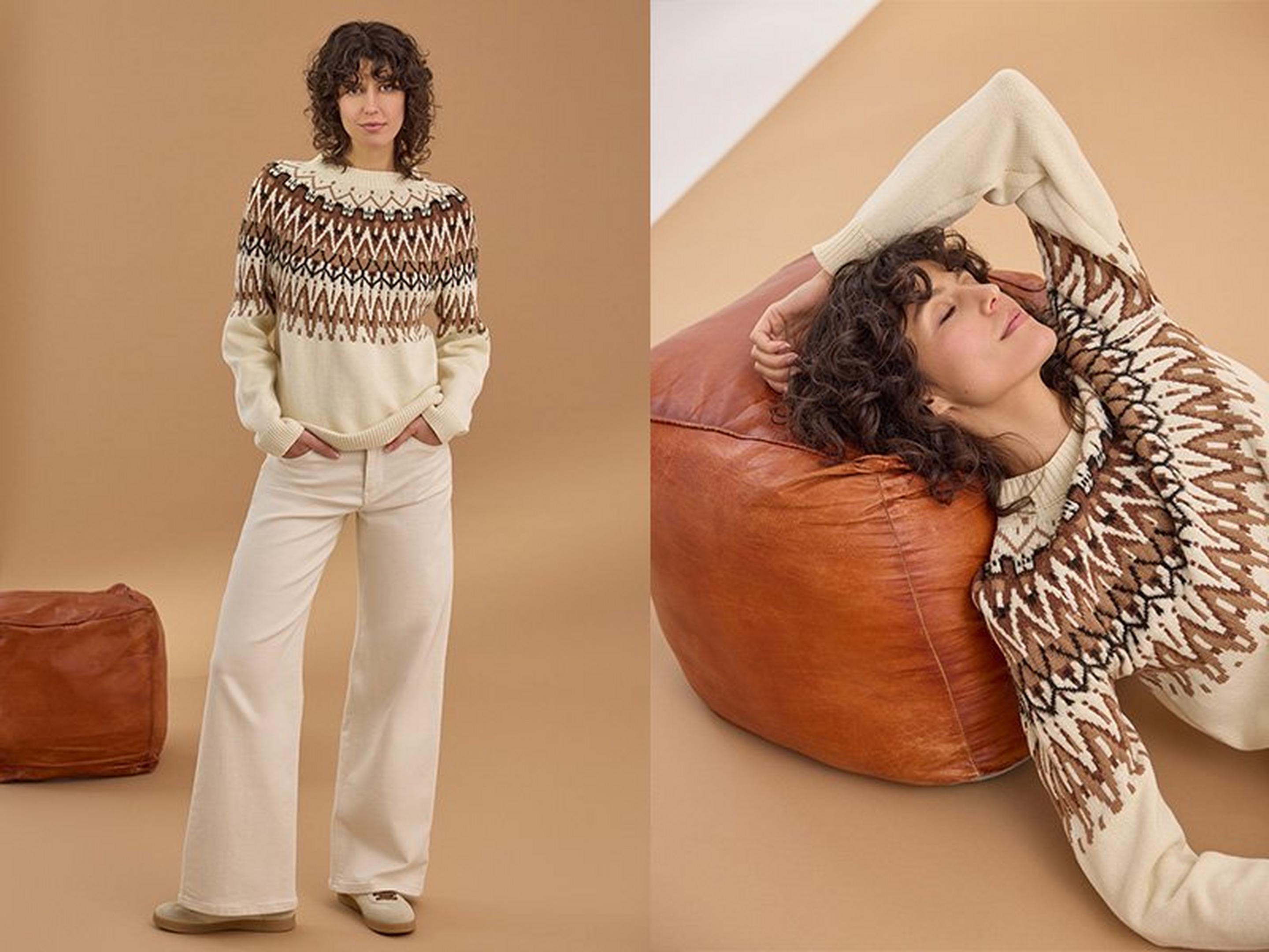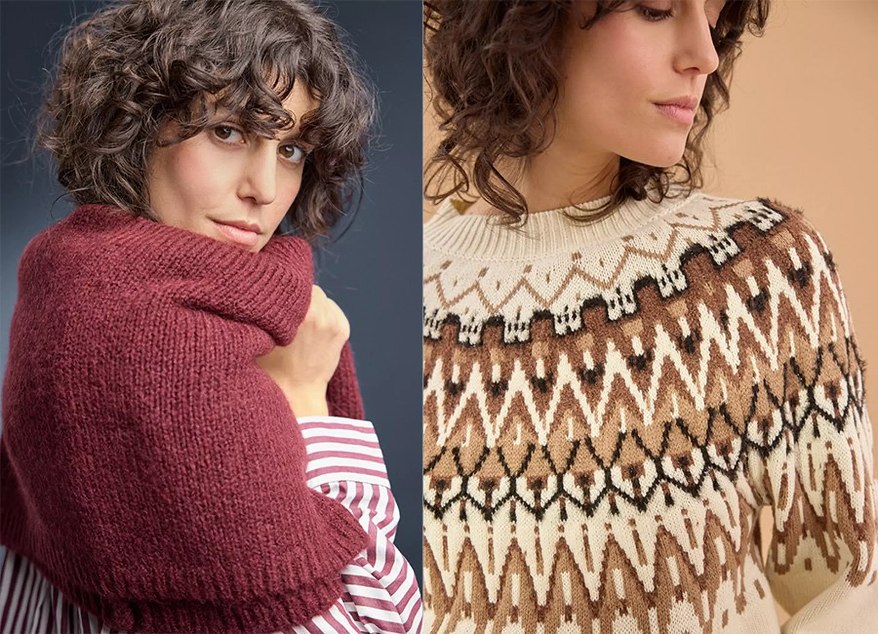 Ein Strickpullover in Zimtbraun, kombiniert mit einer Jeans und goldfarbenen Accessoires – das unterstreicht deinen natürlichen Glow perfekt.