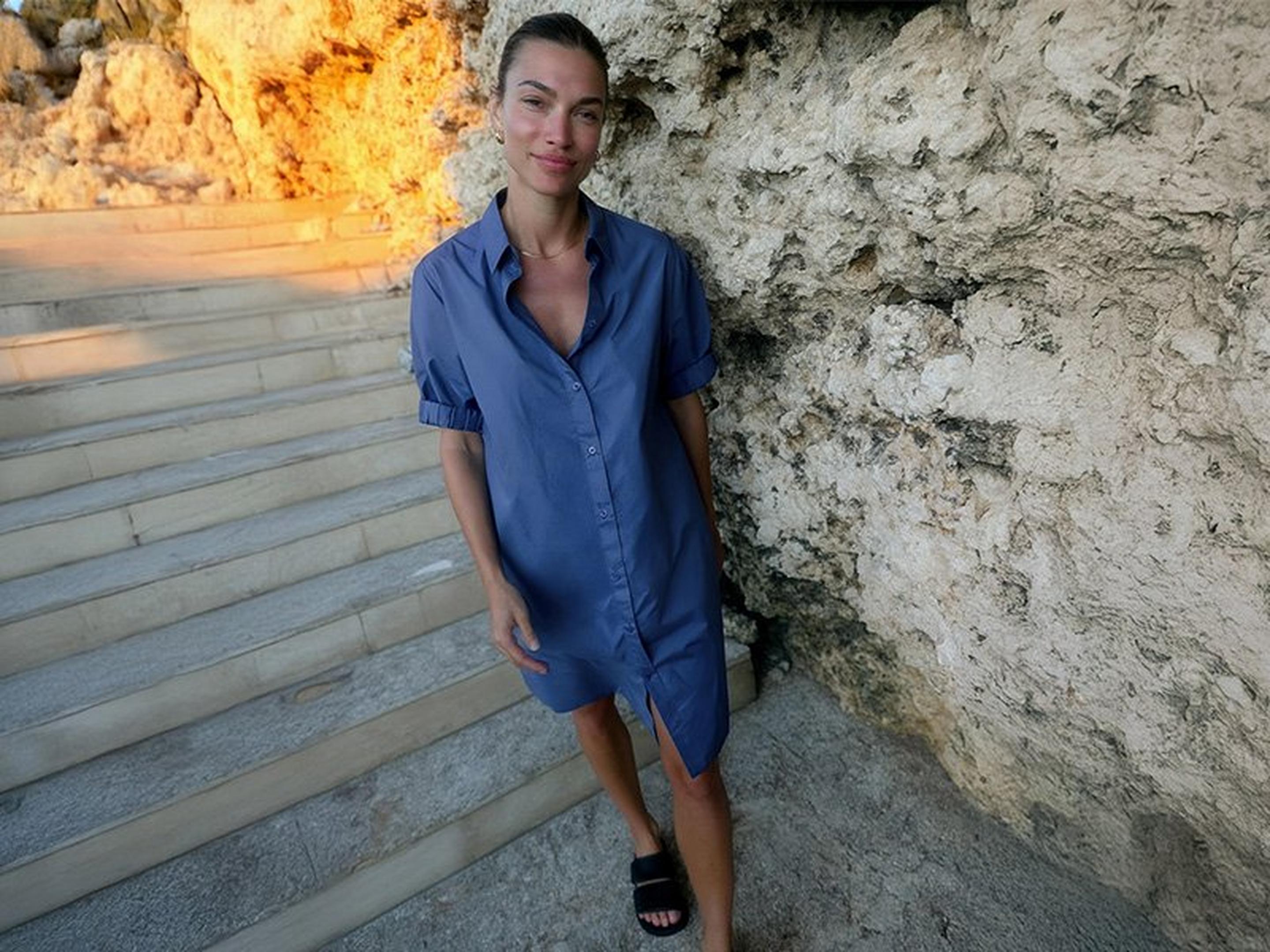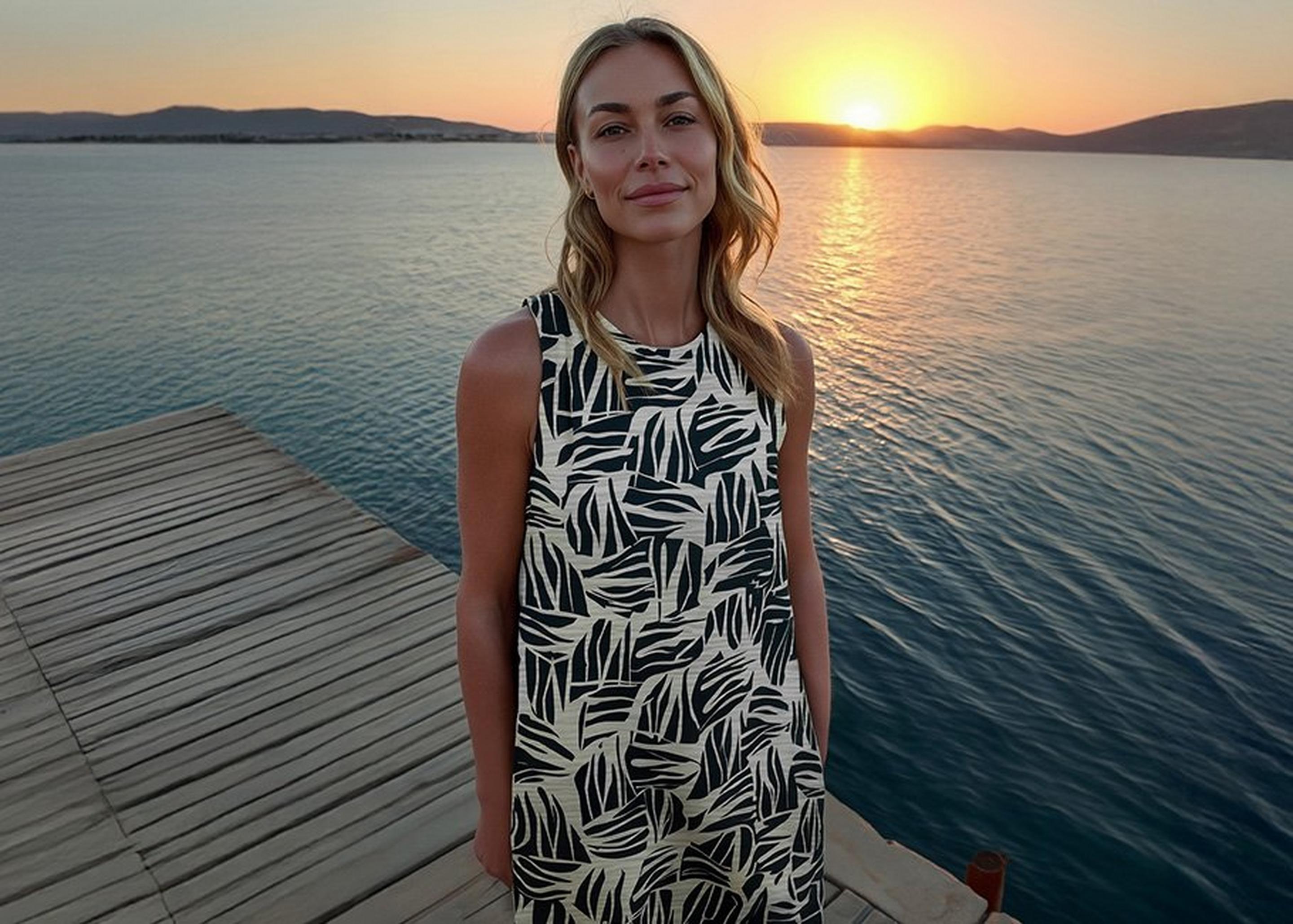 Maxikleid: Kombiniere es mit flachen Sandalen, einer Sonnenbrille und einem Strohhut für einen lässigen Sommerlook.