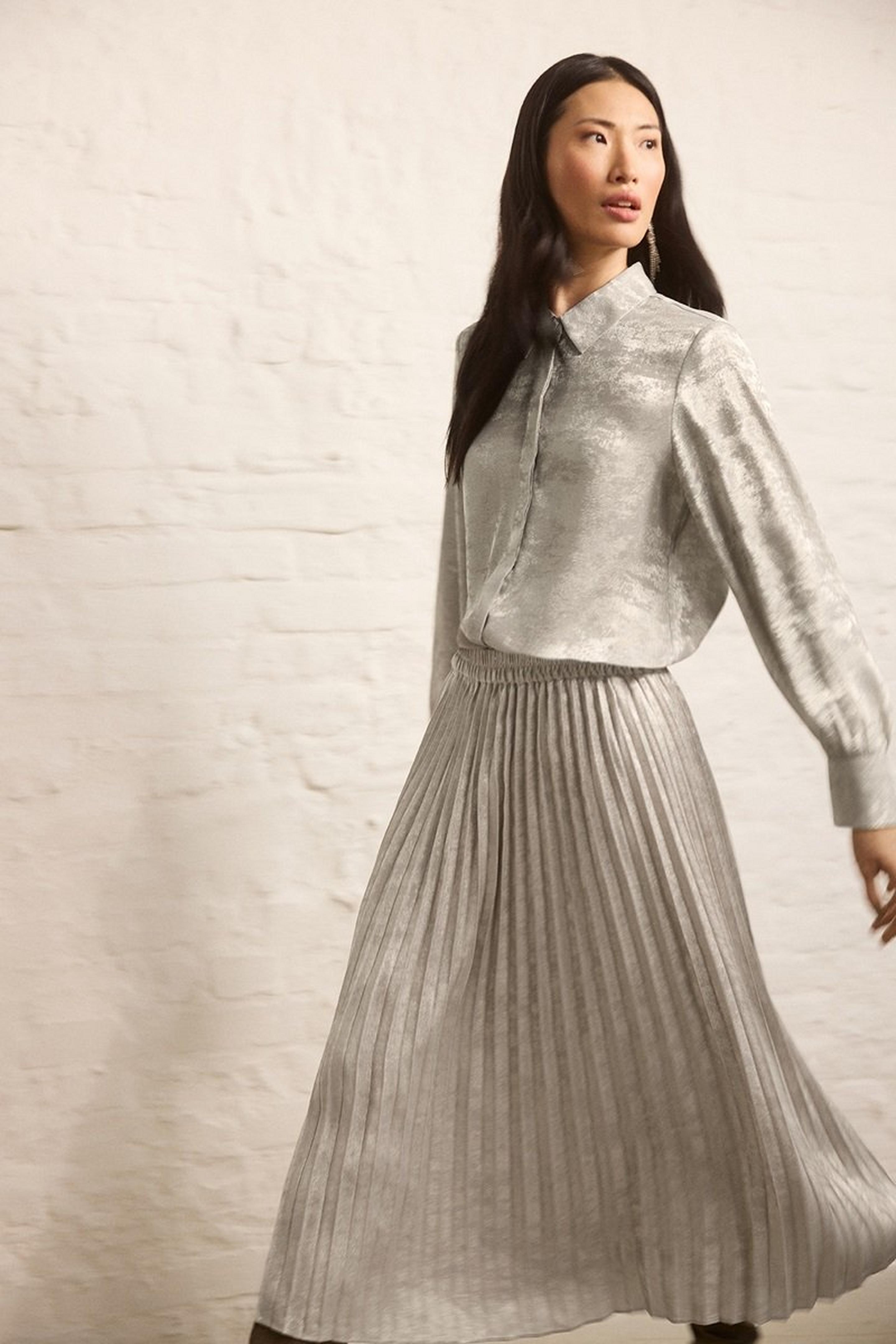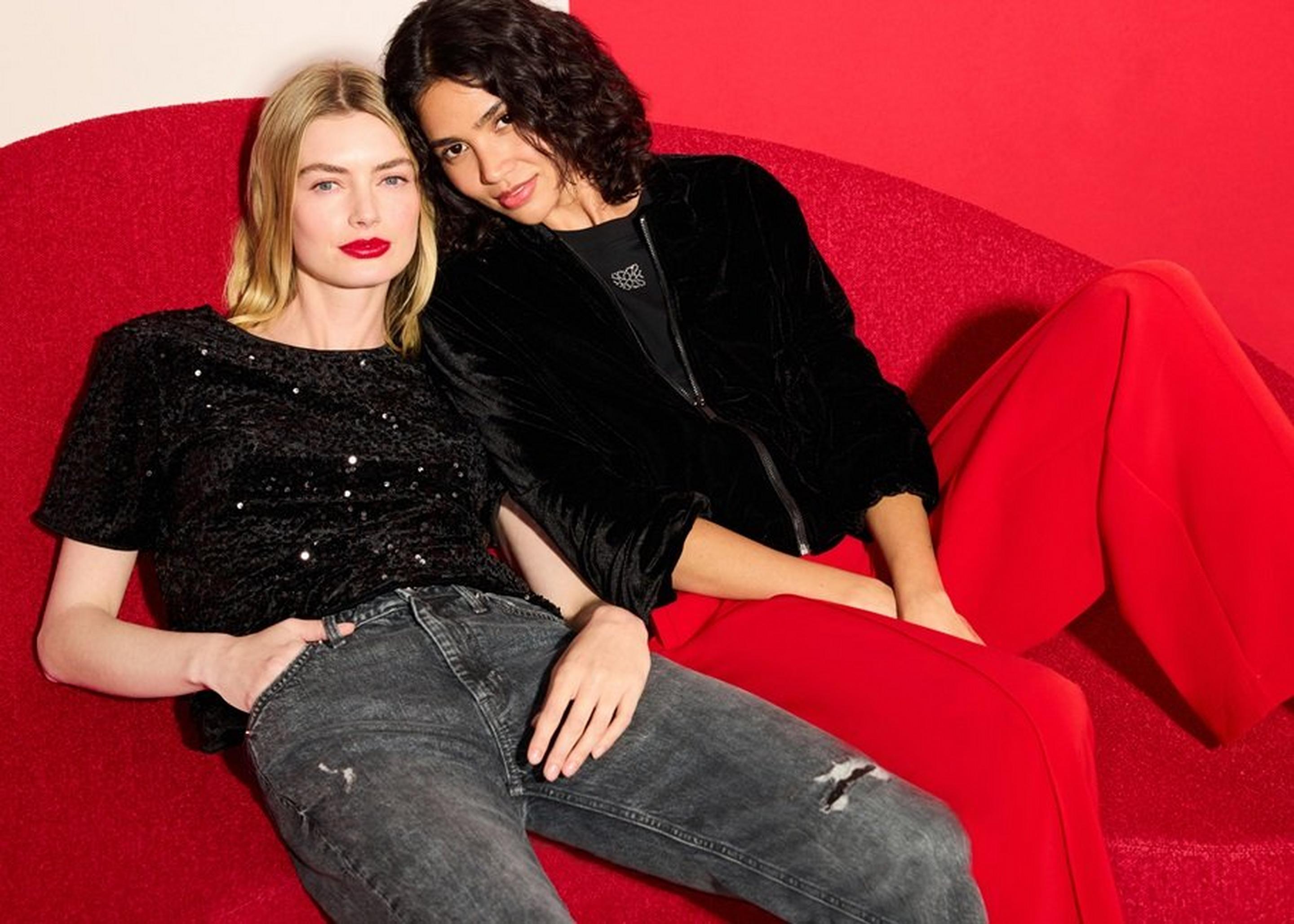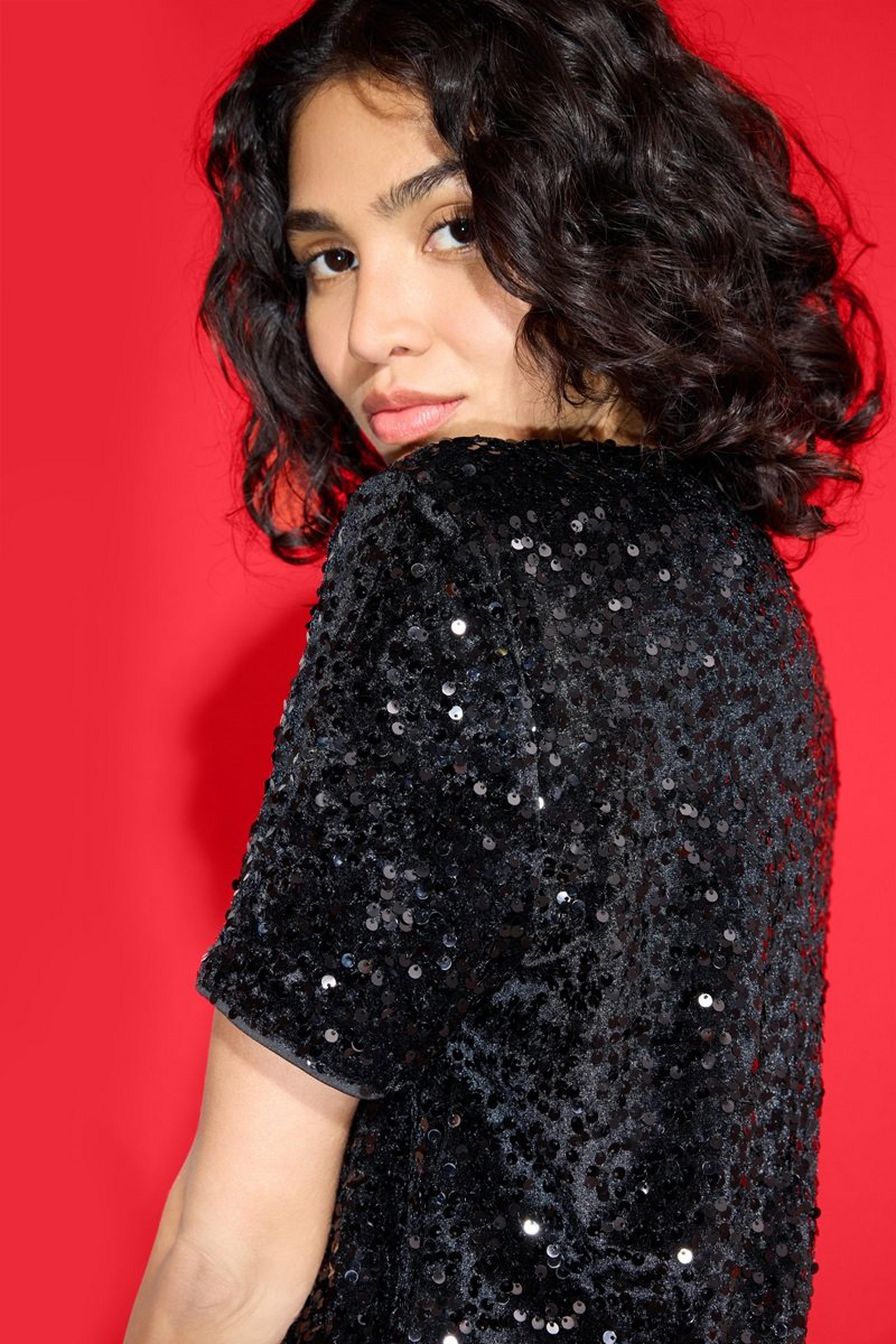Upgrade zur Feier: Ersetze den Blazer durch ein Oberteil mit Pailletten, einen Samt-Blazer oder ein Metallic-Top. Ein auffälliges Statement-Piece reicht oft schon, um Glamour reinzubringen.