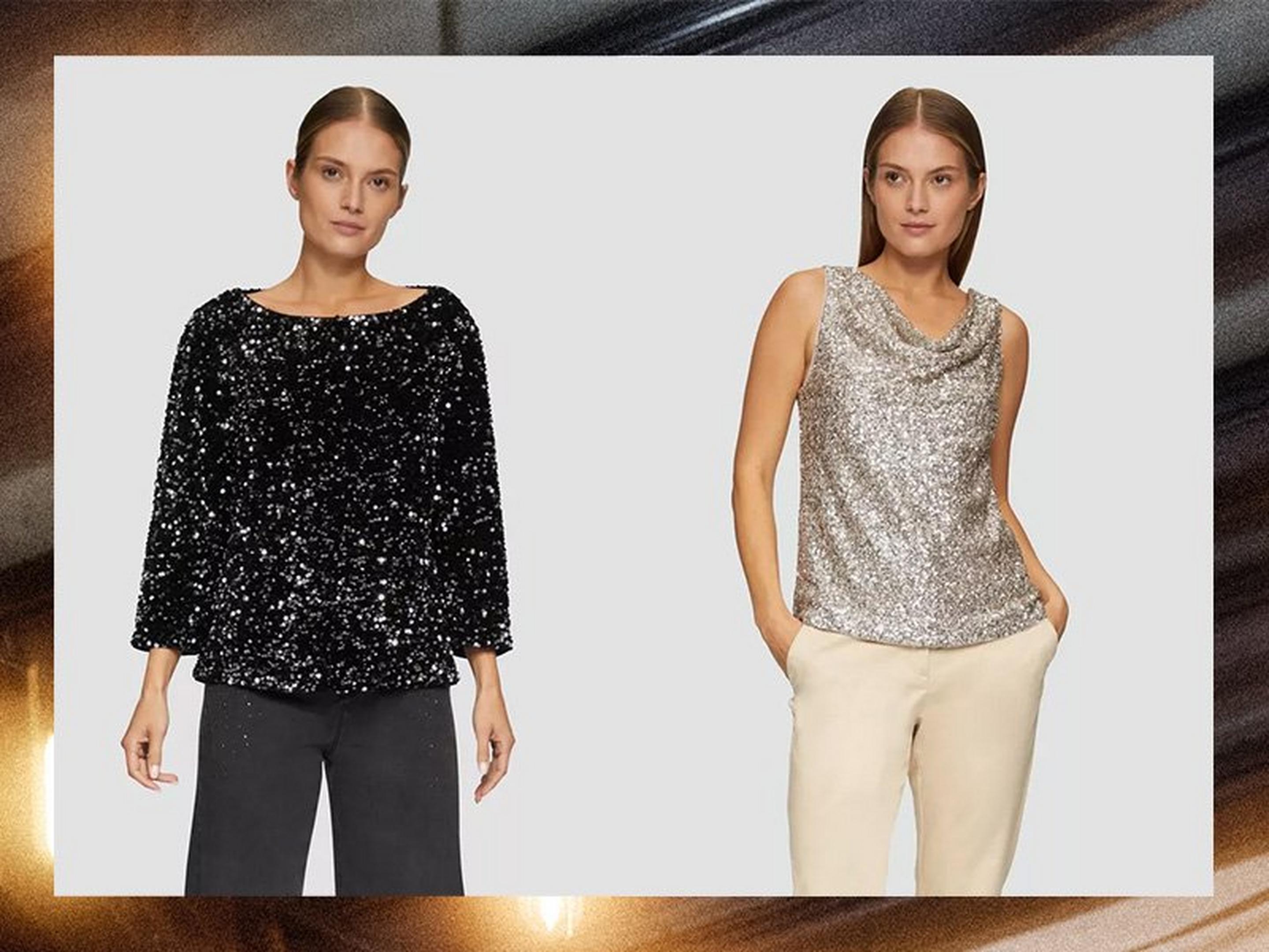 Du suchst nach einem echten Hingucker, der dein Outfit zum Strahlen bringt? Dann sind Paillettenoberteile die perfekte Wahl! Wenn du es lieber etwas dezenter möchtest, dann setze auf glitzernde Akzente. Ob als Detail am Ausschnitt, an den Ärmeln oder als feines Muster, die Pieces lassen sich ganz einfach zur Jeans oder Stoffhose kombinieren und werten jedes Outfit im Handumdrehen auf. So bringst du Glamour in deinen Alltag, ohne overdressed zu wirken.